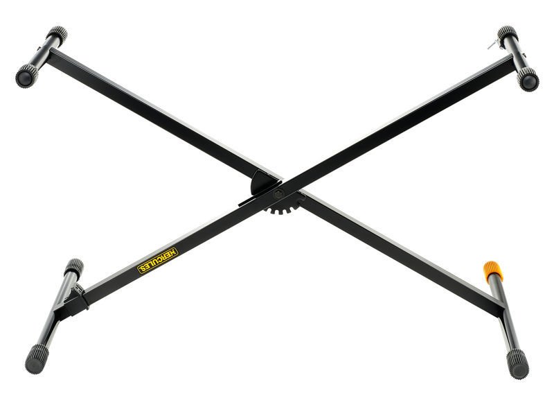 L'Hercules KS-100B EZ Step è uno stand a X per tastiera. E' dotato di meccanismo di regolazione dell'altezza su 6 posizioni con un innesco a pedale.