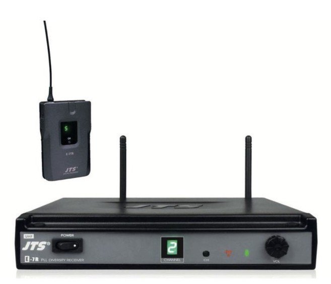 Sistema UHF PLL composto da: ricevitore a doppio canale E-7R e trasmettitore Bodypack E-7TBD. Le caratteristiche tecniche includono larghezza di banda di 36 MHz, 16 canali di frequenze selezionabili, display RF/AF Status, bodypack con controlli on/off, selezione canale, tasto mute. Banda di Frequenza 470-960 MHz.