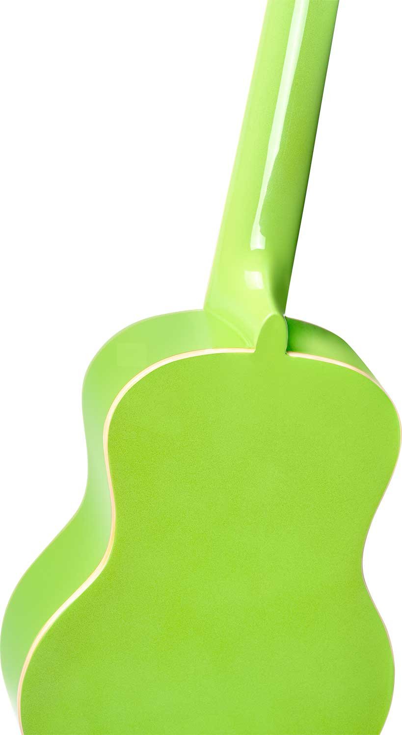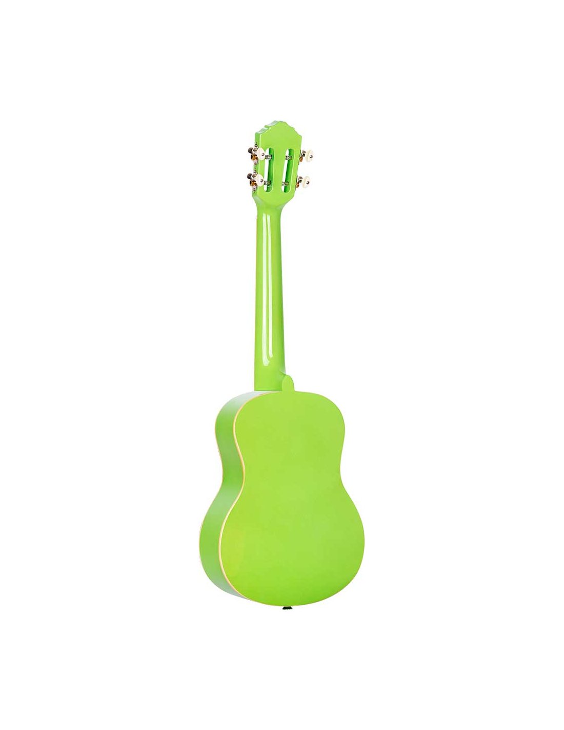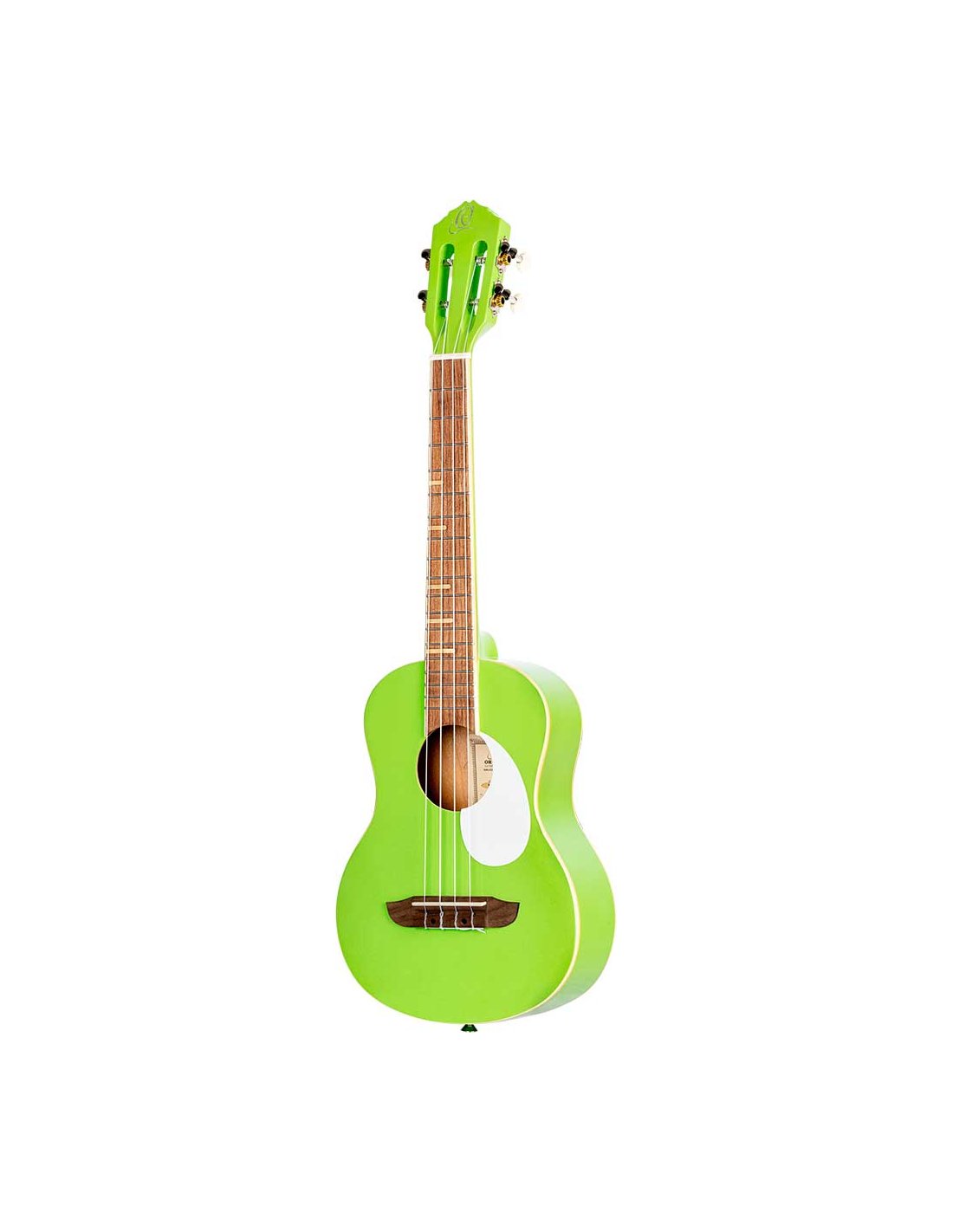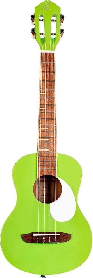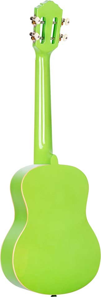 RUGA-GAP Ukulele tenore della serie Gaucho. Top Agathis di colore verde mela brillante. Fondo e fasce: Agathis. Binding in ABS avorio.Manico in Okoumé lucido. Accordatore in stile classico con lamina in okoume. Tastiera e ponte in noce. Intarsi della tastiera in acero. Meccaniche cromate con dado ad alette bianco. Battipenna a goccia bianco. Borsa inclusa con dettagli colorati per abbinare la finitura dell'ukulele.