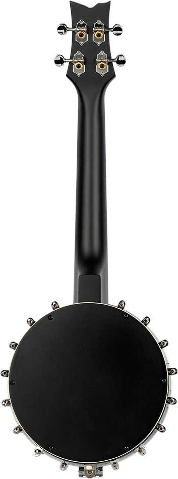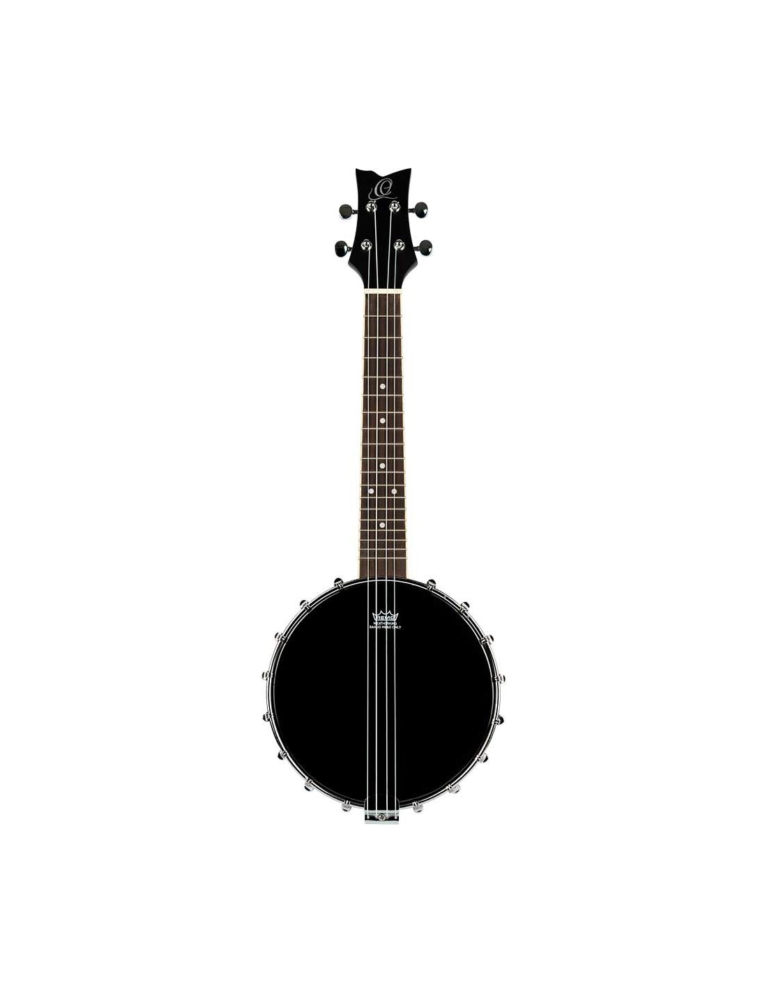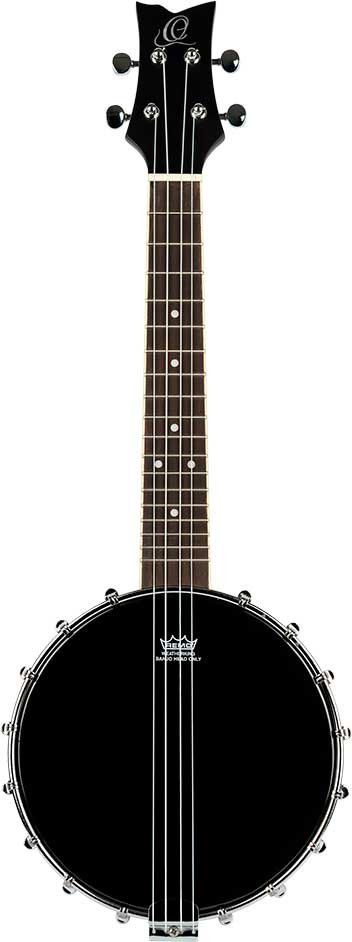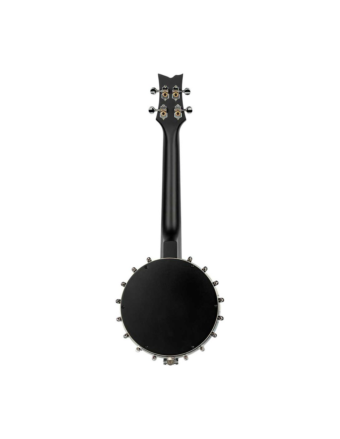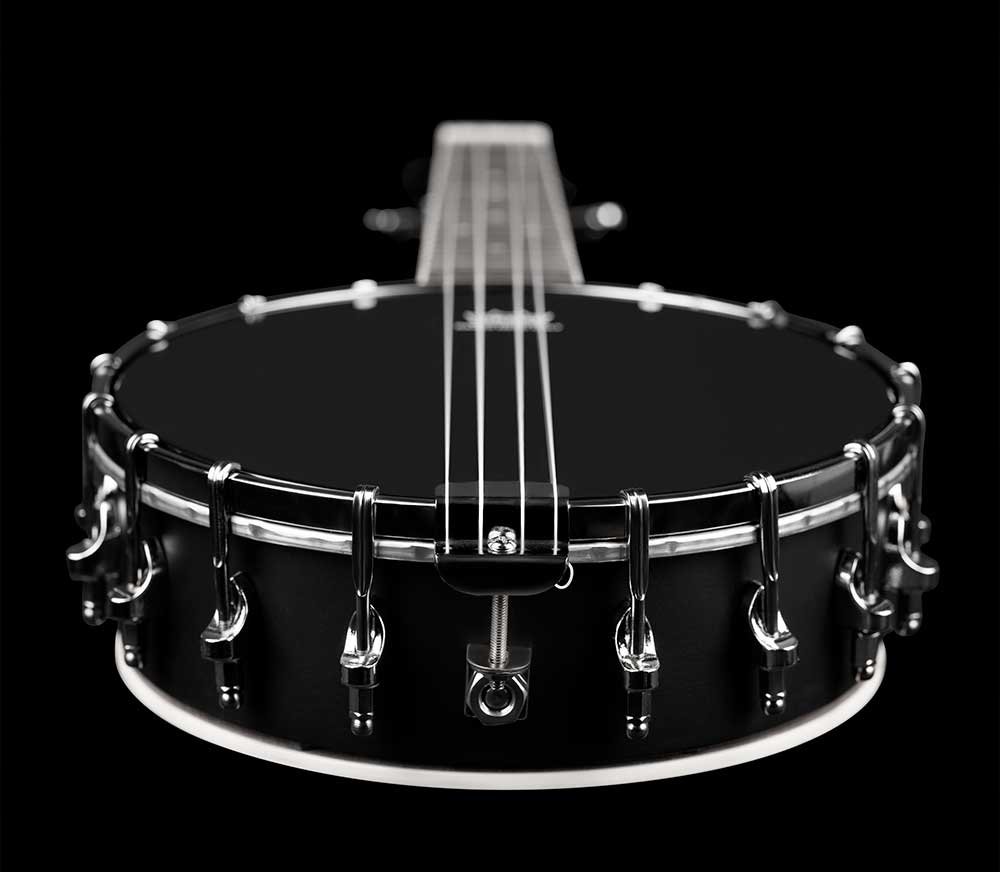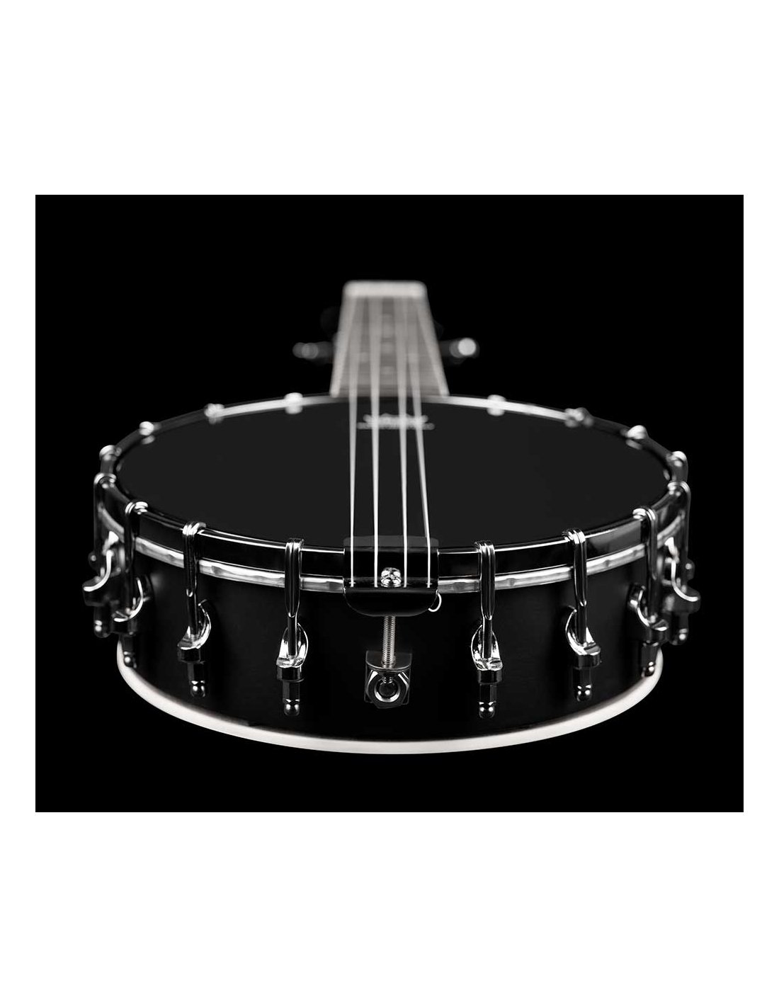 Banjo-ukelele Dimensione Concerto. Ukulele con corpo banjo che mescola il suono di entrambi gli strumenti. Realizzato in acero, con hardware cromato, finitura nero satinato e posteriore chiuso.