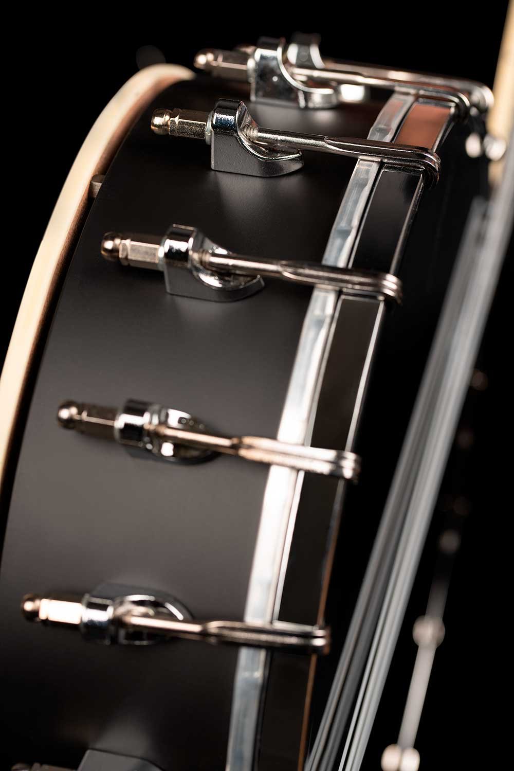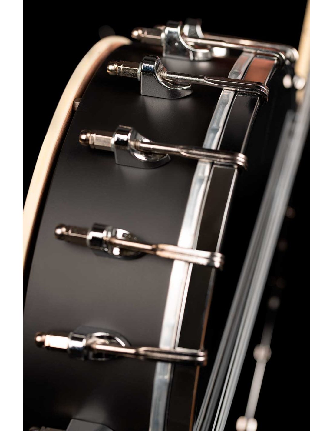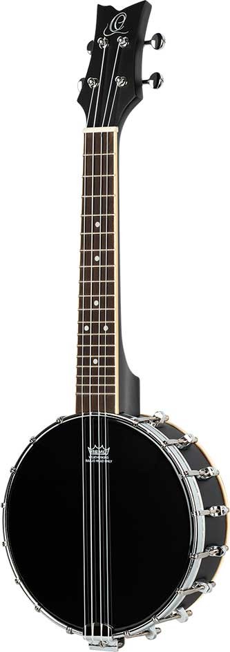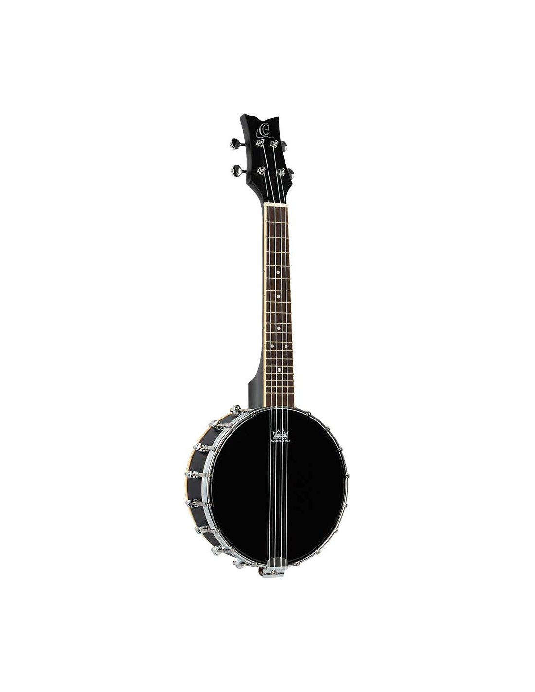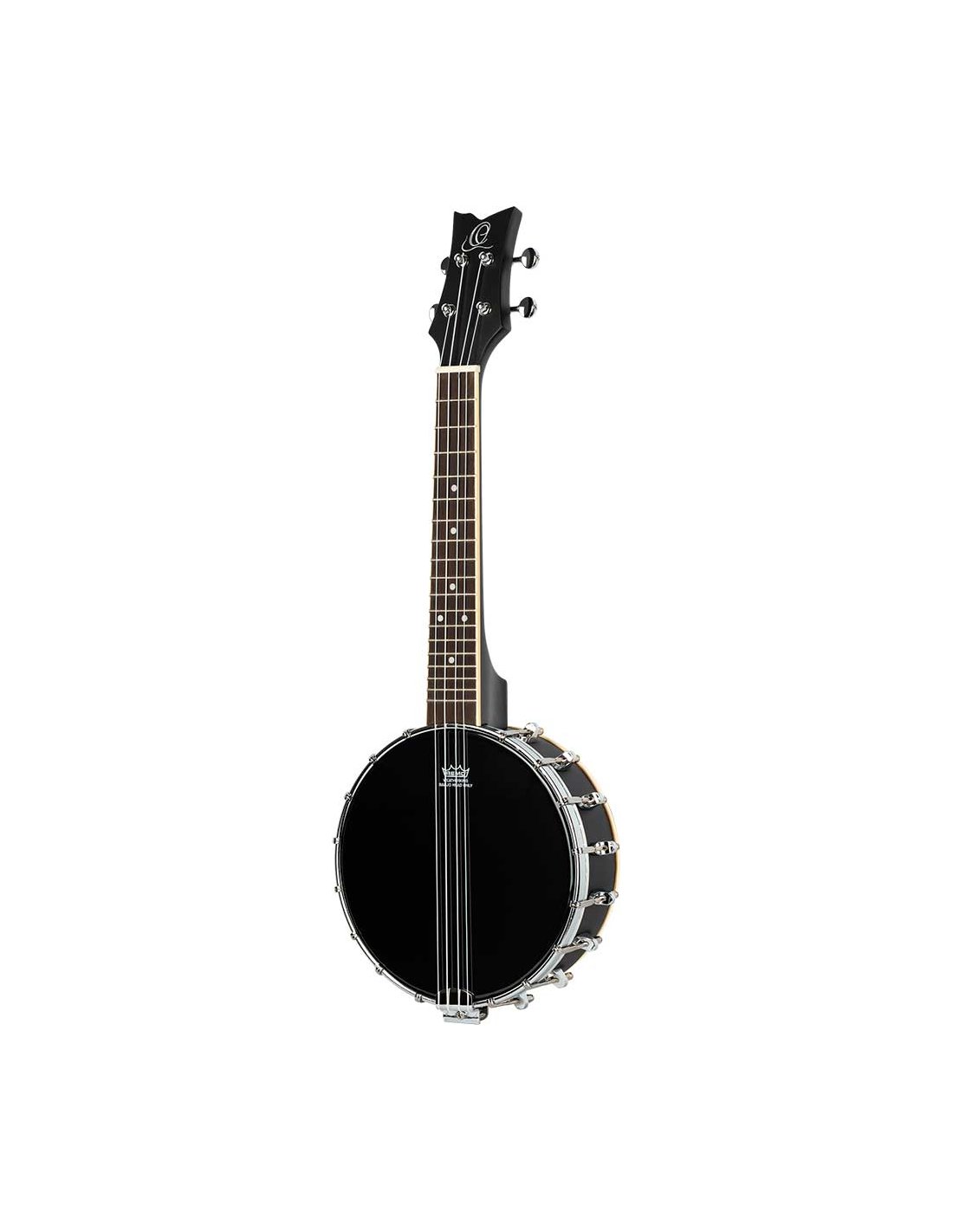 Banjo-ukelele Dimensione Concerto. Ukulele con corpo banjo che mescola il suono di entrambi gli strumenti. Realizzato in acero, con hardware cromato, finitura nero satinato e posteriore chiuso.