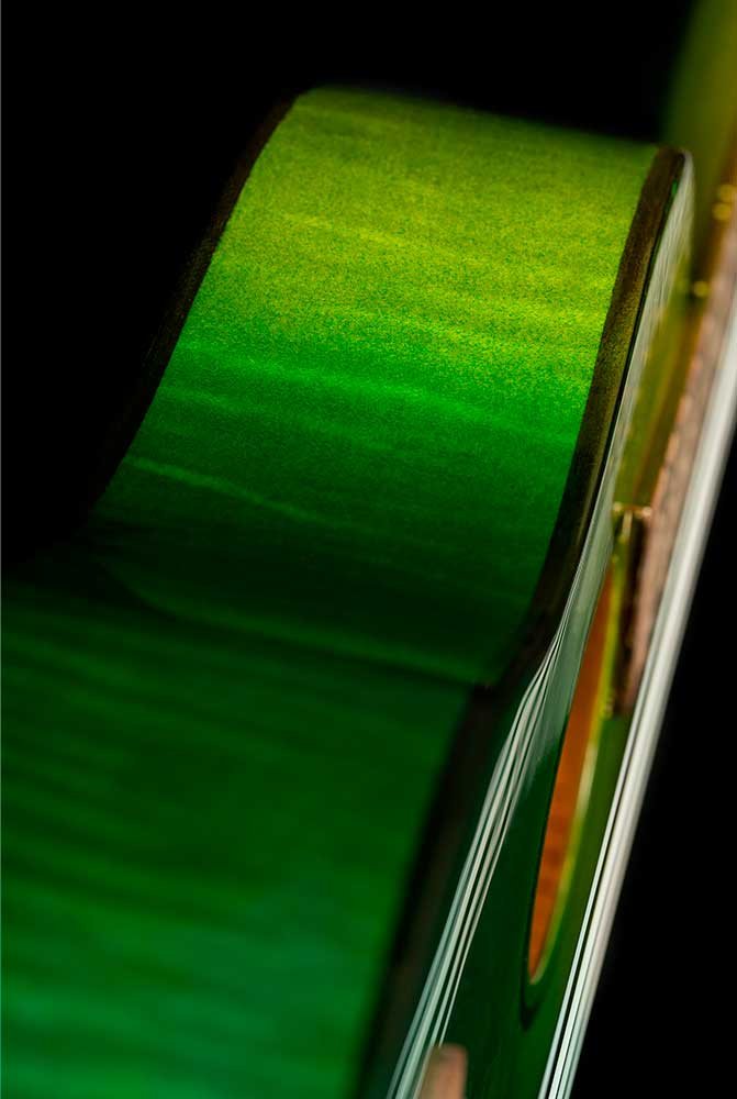 Ukulele RUPR-IVY tenore, serie Prism. Corpo in acero fiammato con top, tastiera e ponte in noce, manico in acero. Finitura molto brillante. Binding noce nel corpo e abalone sulla buca. Sintonizzatori dorati. Monta le corde Ortega UWNY-4-TE. INCLUDE BORSA DELUXE. Scala 432mm