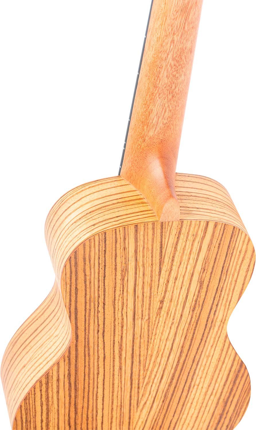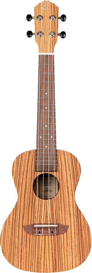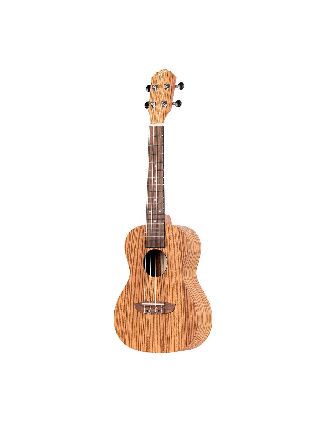 Ukulele Concerto per MANCINI. Top, fasce e fondo zebrawood. Manico in mogano, tastiera Sonokelin. Accordatore diecast Custodia deluxe inclusa.