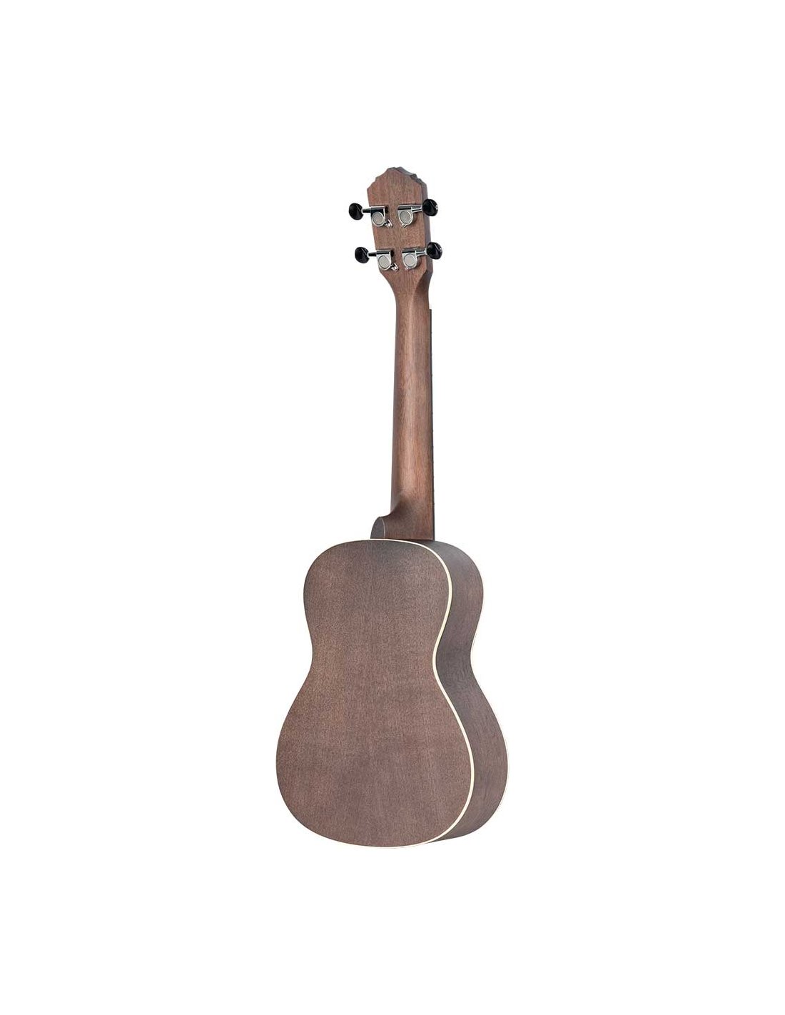 Ukulele per MANCINI concerto. Top, fasce e fondo in okume. Manico in caoba con tastiera in Sonokelin. Finitura nero trasparente opaco.