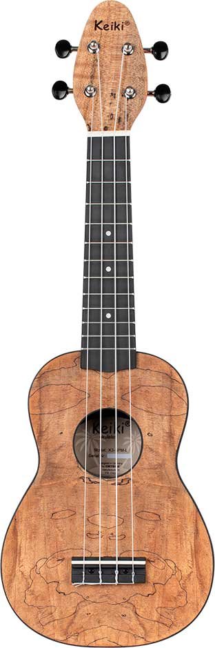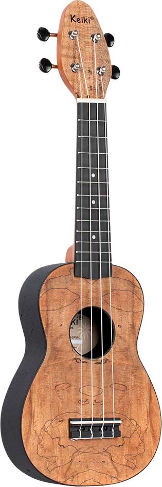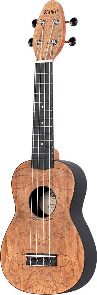 Ukulele pack soprano MANCINO + accordatore + strap + plettri + borsa per il trasporto. Ukulele con ponte, tastiera e corpo arcuato in fibra. Piano in legno Spalted Maple