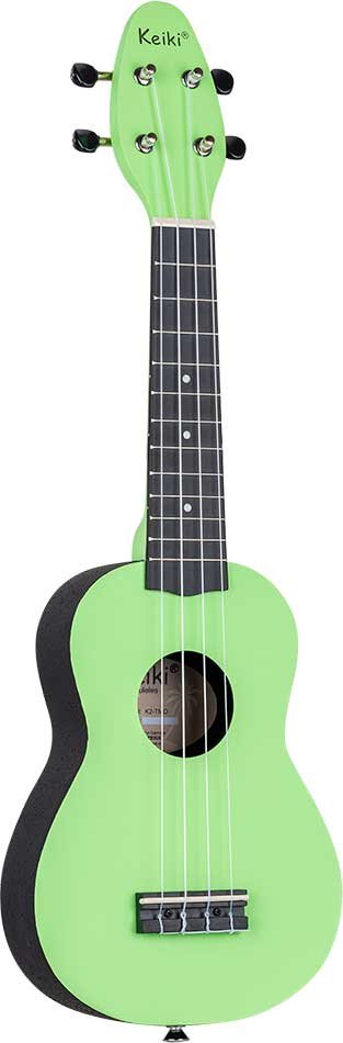 'Gli zaini per ukulele Keiki® sono dotati di tutto ciò di cui hai bisogno: un ukulele da soprano, una borsa da palestra, un accordatore, cinque plettri e una cinghia. L'ukulele stesso presenta un corpo in ABS e un top Agathis dal design accattivante. Il K2 è ora disponibile nel design ''citronella'', ''campo di lavanda'', ''menta dei Caraibi'', ''polvere di fata'', ''tomatillo'' e ''nuvola silenziosa''.'